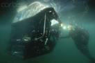 One day a SCUBA diver was repairing a fitting near the nose when the